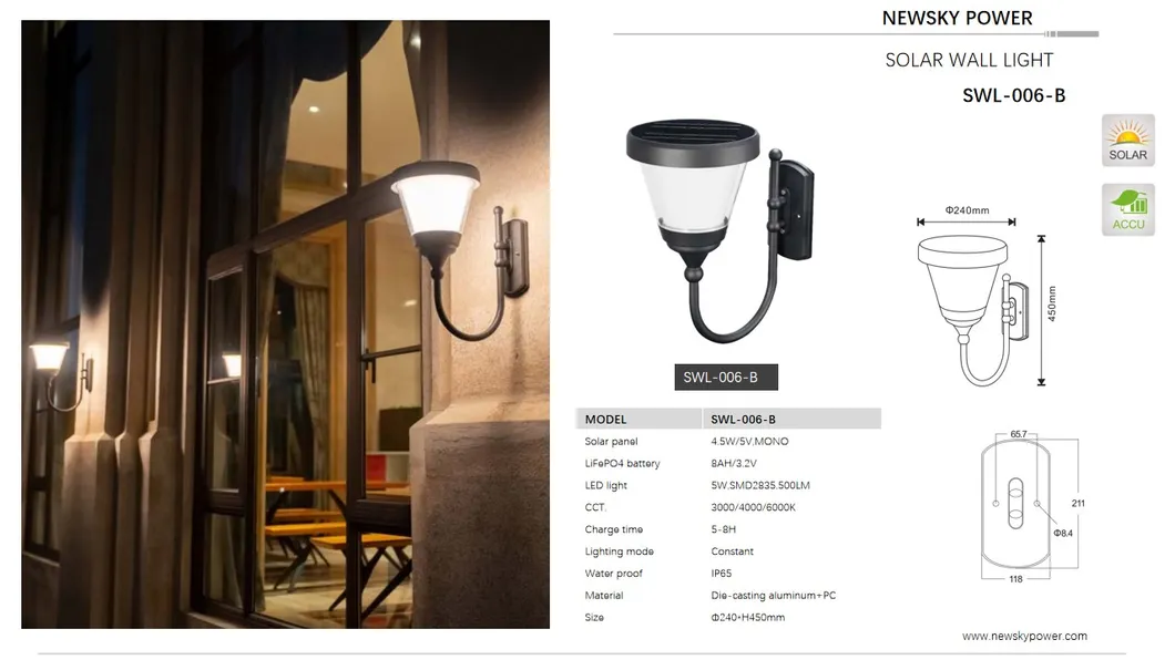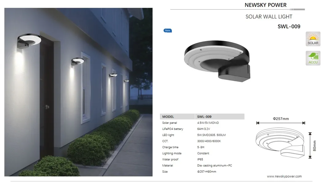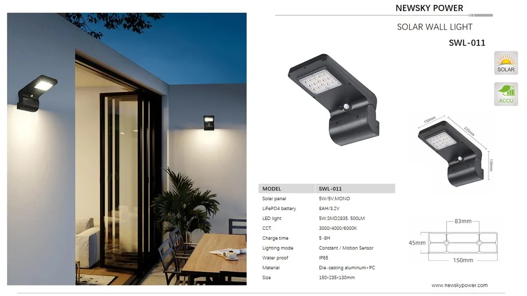 2024 IP65 Waterproof 5W Outdoor Garden Landscape Lighting Solar Wall Mounted Lights